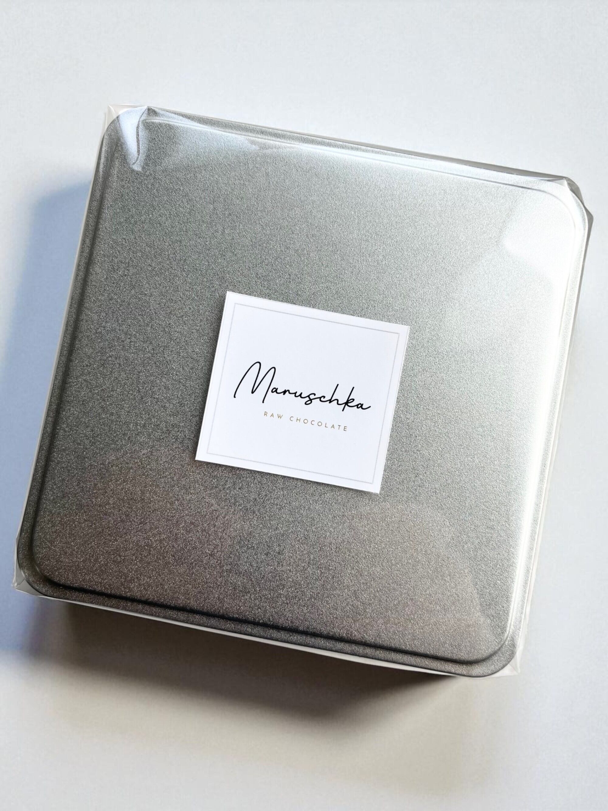 ギフトなどに最適なシルバーのプレーン缶(フルサイズ16個入りの缶と同じ)に入れてお届けいたします。